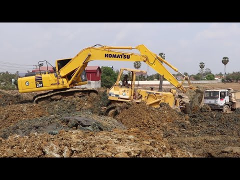 (7/03/2020)Best pull out stuck in mud Bulldozer and dirt loading dump truck