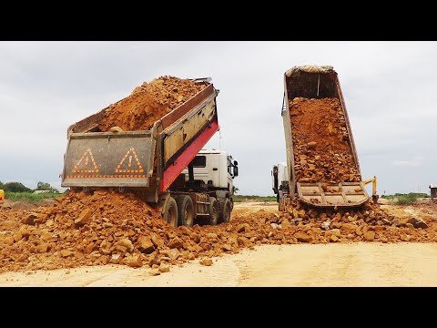 Construction Heavy equipment rock dirt dumping dump truck and d58E Komat...